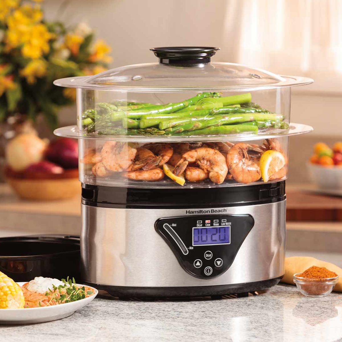 - Permite utilizar un tazón humeante o apilar dos tazones para cocinar al vapor cantidades grandes.