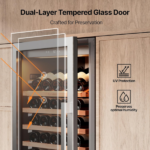 Este refrigerador de vino combina elegancia y funcionalidad. Además, ofrece un almacenamiento amplio y seguro para tus botellas favoritas. Por lo tanto, es ideal tanto para uso en el hogar como para exhibir tu colección con estilo.