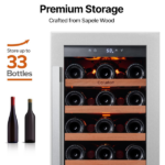 - Capacidad de 3 pies cúbicos para 33 botellas.