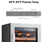 La vinera Ca’Lefort 33 botellas 15 pulgadas es el compañero ideal para los amantes del vino. Además, tiene capacidad de 3 pies cúbicos para hasta 33 botellas estándar. Asimismo, su panel digital permite ajustar la temperatura entre 40 y 65 °F, y los estantes de madera ajustables facilitan colocar botellas de diferentes tamaños. Incluso, la luz LED se puede cambiar entre ámbar, azul o blanco según el ambiente.