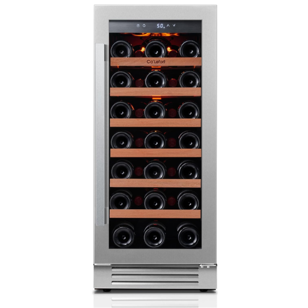La vinera Ca’Lefort 33 botellas 15 pulgadas es el compañero ideal para los amantes del vino. Además, tiene capacidad de 3 pies cúbicos para hasta 33 botellas estándar. Asimismo, su panel digital permite ajustar la temperatura entre 40 y 65 °F, y los estantes de madera ajustables facilitan colocar botellas de diferentes tamaños. Incluso, la luz LED se puede cambiar entre ámbar, azul o blanco según el ambiente.