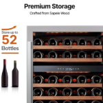 La vinera Ca’Lefort 52 botellas es ideal para quienes desean conservar sus vinos con cuidado. Además, tiene capacidad para 46 botellas y un panel digital que permite ajustar la temperatura con precisión. También, los estantes ajustables de madera facilitan colocar botellas de diferentes tamaños, y la iluminación LED se puede cambiar entre ámbar, azul o blanco según el ambiente.