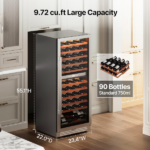- Capacidad 9,72 pies cúbicos, hasta 90 botellas.