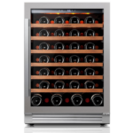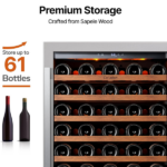 El vinera Ca’Lefort para 61 botellas de 24 pulgadas combina estilo y funcionalidad. Además, su capacidad de 5,65 pies cúbicos permite almacenar botellas de distintos tamaños. Por lo tanto, su panel digital inteligente ajusta la temperatura con precisión de 1 °F y los estantes de madera de sapele facilitan la organización. Incluso, las luces LED ámbar, azul o blanco crean un ambiente elegante según tu estado de ánimo.