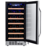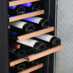 Respecto al control, la temperatura se ajusta entre 40 y 65 grados Fahrenheit. Además, cuenta con una pantalla LED azul clara y fácil de leer. También incluye alarmas de temperatura y de puerta abierta. Por consiguiente, el vino se conserva mejor. Igualmente, el ventilador interno reparte el aire frío de forma uniforme.