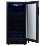 La vinera EdgeStar para 30 botellas, con 15 pulgadas es una opción práctica y funcional para almacenar vino en casa. En primer lugar, su diseño compacto y color negro permiten integrarla fácilmente en distintos espacios. Además, puede instalarse de forma empotrada o independiente, lo cual brinda mayor flexibilidad. Por esta razón, resulta ideal para cocinas, departamentos o áreas sociales donde el espacio es limitado y se busca una solución sencilla.