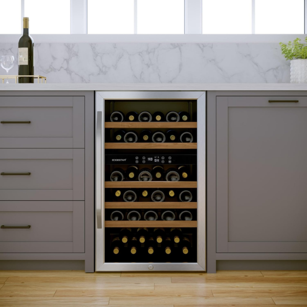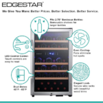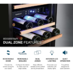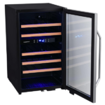 EdgeStar ofrece control digital de temperatura con zonas duales que funcionan de manera independiente. Es decir, la zona superior e inferior pueden ajustarse entre 40 y 65 °F, lo que es ideal para distintos tipos de vino. Además, incluye alarmas de temperatura alta o baja y de puerta entreabierta, garantizando que las botellas se mantengan en las condiciones adecuadas.