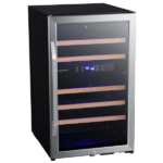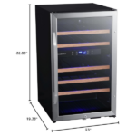 La vinera EdgeStar para 38 botellas, CWF380DZ de 19 pulgadas es ideal para quienes desean mantener su vino en condiciones óptimas. Además, su diseño moderno en acero inoxidable aporta estilo y elegancia a cualquier espacio. Por otro lado, al ser independiente y compacta, con dimensiones de 23 pulgadas de profundidad, 19,38 de ancho y 32,88 de alto, se puede colocar fácilmente en cocinas, salas o bares personales.