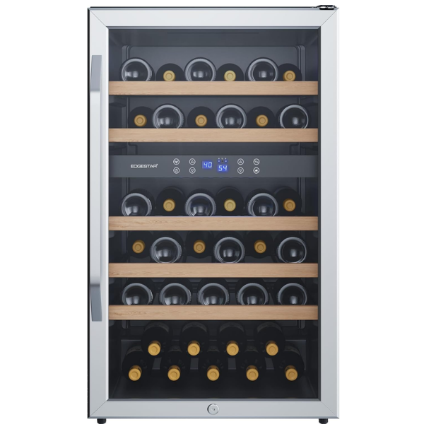 EdgeStar ofrece control digital de temperatura con zonas duales que funcionan de manera independiente. Es decir, la zona superior e inferior pueden ajustarse entre 40 y 65 °F, lo que es ideal para distintos tipos de vino. Además, incluye alarmas de temperatura alta o baja y de puerta entreabierta, garantizando que las botellas se mantengan en las condiciones adecuadas.