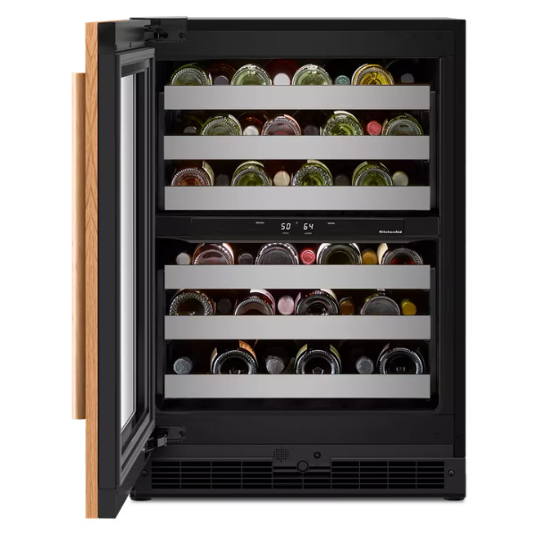 La Vinera KitchenAid 24″ KUWR324SPA está diseñada para integrarse al gabinete, por lo que no rompe la estética de la cocina. Además, su diseño permite colocar un panel personalizado al frente. Así, se adapta al estilo del espacio. También ofrece almacenamiento organizado y práctico.