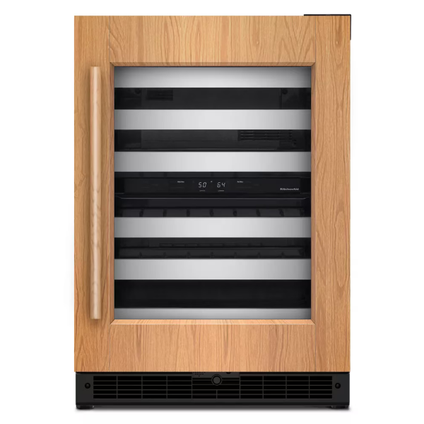 La Vinera KitchenAid 24″ KUWR324SPA está diseñada para integrarse al gabinete, por lo que no rompe la estética de la cocina. Además, su diseño permite colocar un panel personalizado al frente. Así, se adapta al estilo del espacio. También ofrece almacenamiento organizado y práctico.