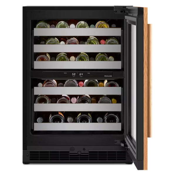 La Vinera KitchenAid Paneable 24″ KUWL324SPA combina diseño elegante y funcional. Primero, su diseño panel listo permite integrarla con la carpintería de tu cocina y además ofrece un acabado uniforme con otras superficies. Asimismo, gracias a sus bisagras ocultas, se puede abrir con facilidad y, al mismo tiempo, queda al ras del mueble. Por lo tanto, se convierte en una opción perfecta para cocinas modernas y clásicas.