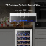 Por otra parte, su sistema de compresor ofrece un enfriamiento estable y silencioso, con un nivel de ruido bajo que no molesta. Mantiene una temperatura precisa entre 40 y 65 °F, lo que permite conservar distintos tipos de vino en buenas condiciones. Así, cada botella se mantiene lista para servir, con sabores y aromas bien protegidos.