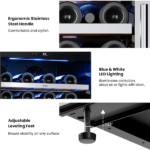 En cuanto al rendimiento, esta vinera permite regular la temperatura entre 40 y 65 °F de manera sencilla. Gracias a su panel digital táctil, el ajuste es rápido y claro. Igualmente, los ventiladores dobles distribuyen el frío de forma uniforme. Por consiguiente, cada botella se conserva en condiciones estables.