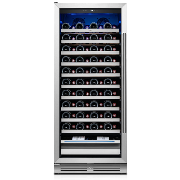 En cuanto al rendimiento, esta vinera permite regular la temperatura entre 40 y 65 °F de manera sencilla. Gracias a su panel digital táctil, el ajuste es rápido y claro. Igualmente, los ventiladores dobles distribuyen el frío de forma uniforme. Por consiguiente, cada botella se conserva en condiciones estables.
